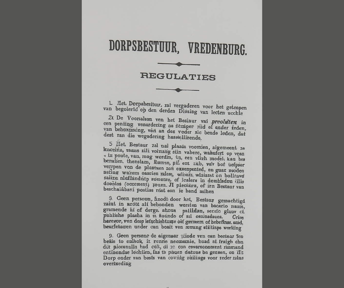 Vredenburg het ontstaan op die plaas Prosesfontein, later bekend as “Twisfontein” weens ’n waterregte-geskil tussen twee boere. Nadat die geskille opgelos is, is die dorp “Vredenburg” genoem – ’n naam wat vrede simboliseer en mettertyd deel geword het van die nuwe gemeente se identiteit.